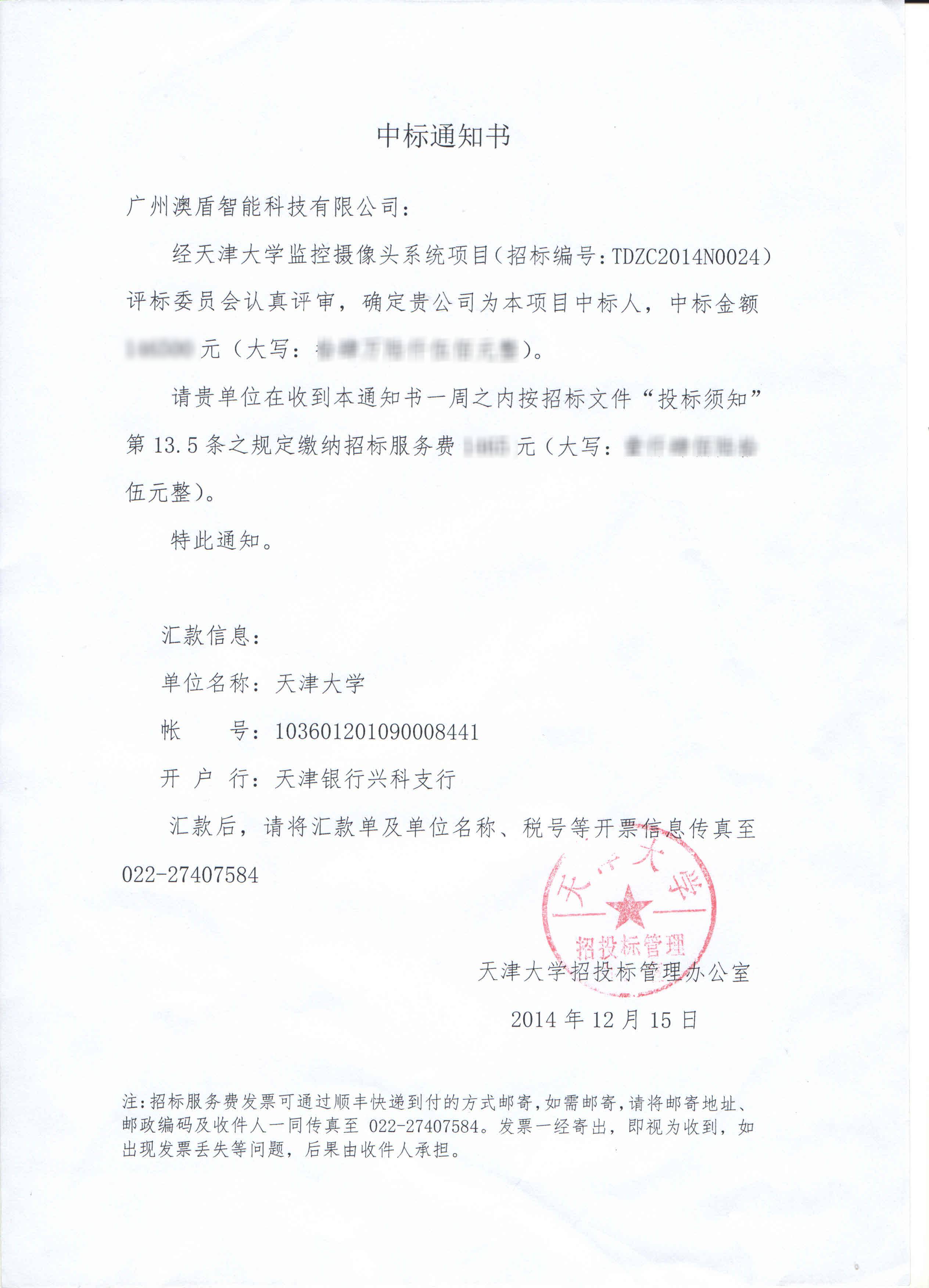 天津大學監控攝像頭系統項目成功中標公告2016-03-22 15:02:05
