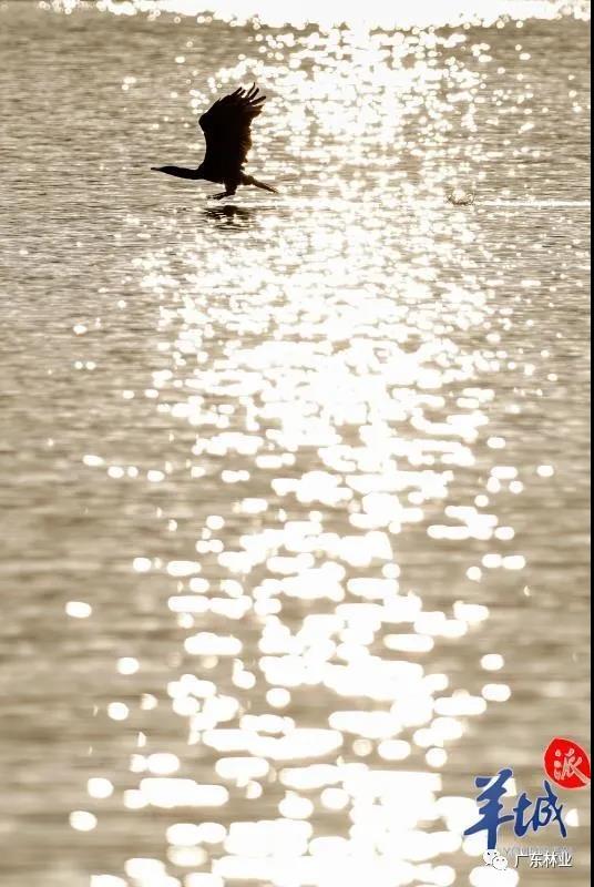 夕陽西下,碎金滿湖;鷺鳥群飛,蕩起清波。這是廣州海珠國家濕地公園海珠湖上的經典景致。